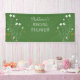 Banner de bienvenida con elegantes rocas de champú al estilo de las flores silvestres y cuatro trébol de hojas en blanco y dorado de fondo verde. La plantilla está lista para que agregue su nombre y ocasión (u otro texto). Fácil de personalizar para tu ducha de novias con tema irlandés o St Patricks, ducha de bebé, fiesta de cumpleaños, etc.