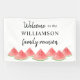 Este cartel de bienvenida familiar está decorado con sandías acuáticas. Perfecto para su barbacoa familiar de verano, picnic o cocina. Personalizable fácil. Acuarela original © Michele Davies.