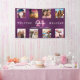Bienvenidos a una fiesta de cumpleaños número 21 (o de cualquier edad) para un chica, celebrando su vida con un collage de ocho de tus propias fotos. Foto de familia, amigos, mascotas, vacaciones. Personalice y agregue un nombre, edad 21 y fecha. Con el texto: Bienvenido (x2) las letras de color blanco y rosa. Elegante fondo violeta profundo. El color de fondo morado es desigual.