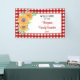 ¿Estás planeando una reunión familiar? Esta pancarta floral de reuniones familiares se verá muy bien en su evento. Está decorado con flores acuáticas y follaje sobre un fondo rojo de verificación. Personalizable fácil. Acuarela original © Michele Davies.