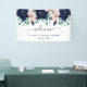 Esta elegante y moderna pancarta boda presenta un diseño acuático de color acuático con flores. Las flores de peonía y anémona aparecen en tonos azul marino y rosa rubor con hojas de eucalipto verde. El fondo es blanco y está decorado con un acento de acuarela azul pálido. La tipografía de escritura moderna dice "bienvenidos", haciendo que este cartel sea perfecto para cualquier celebración, incluyendo duchas de novias, duchas de bebés, graduaciones y bodas.