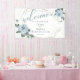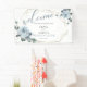 Los colores hermosos que aparecen en esta pancarta de bienvenida de vinilo boda son perfectos para uso de bodas en interiores o exteriores. Rosas acuáticos, hojas y bayas en azul polvoriento de moda moderna rodean un marco dorado geométrico de estilo terrario con vegetación de sabores. texto personalizar, estilo de fuente, color y tamaño. Obra de arte original creada para la BarefootBride™ por © WhimsicalArtwork™ - Esta es parte de una suite Boda Stationery con boda, ducha de bebé y otras papelería de eventos a juego.