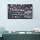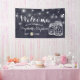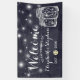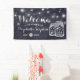 Plantillas de pancartas de bienvenida boda - Elegantes frascos de mason y luces de cadena sobre fondo de línea floral azul de la marina. Un diseño perfecto para tu gran día. ¡Todo el estilo de texto, colores, tamaños se pueden modificar para adaptarlo a sus necesidades!
