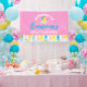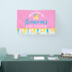 Banner de bienvenida colgante de vinilo para baby shower de pato de goma de niña en rosa.