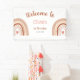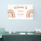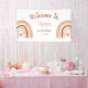 El diseño de pancartas de bienvenida en tono boho arcoiris para los niños de primer año de fiesta. Tiene arcoíris en tonos pastel con un lindo corazón y un guión de caligrafía que lo hace perfecto para el primer cumpleaños del chica. Usted puede fácilmente personalizar todos los detalles.