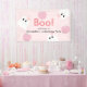 Esta bonita y pequeña pancarta de bienvenida de cumpleaños de halloween presenta un fondo rosa claro con chicas fantasmas con grandes cintas rosas y calabazas rosas. Personalízalo para tus necesidades. Puedes encontrar productos coincidentes en mi tienda.