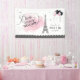 Bienvenido a sus huéspedes al verdadero estilo parisino con esta pancarta de 16 años con un ilustracion de la Torre Eiffel, globos y confeti. Este diseño combina el glamour con un toque francés lúdico. El texto del guión "Bienvenue" (Bienvenue) se añade al ambiente de la noche en París. La elegante paleta de colores rosa, negro y blanco hace de este hotel un lugar ideal para una fiesta de cumpleaños con temática parisina tan de moda como divertida. Personalice los detalles de su evento para una velada inolvidable. Busque ID1162 para ver otros productos de coordinación en este conjunto de diseños. NOTA: el diseño incluye algún contenido generativo.