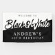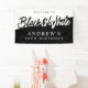 Elegante cartel de bienvenida en blanco y negro. El tema del fiesta blanco y negro es divertido y tan versátil que es un tema perfecto para muchos tipos de fiestas. Personalizar este banner de fiesta con su nombre y cualquier otro mensaje de personalizado que desee incluir!
