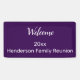 Este cartel de reunión familiar morado oscuro tiene un texto en blanco. Puede editar el texto para mostrar un mensaje personalizado. La línea superior del texto es un guión que actualmente dice Bienvenida. La línea central es para el año o la fecha. La última línea es para el nombre del evento.