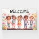 Lona Bienvenida; niños con flores