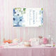 Bienvenidos a los invitados con esta pancarta de shower nupcial floral de acuarela azul. Las flores suaves pintadas a mano enmarcan el diseño, creando un punto focal elegante para entradas, mesas de regalos o telones de fondo para fotos. Personalice con el nombre de la invitada de honor y la fecha del evento para que coincida con el tema de su shower. Una hermosa pieza de declaración que se coordina fácilmente con papelería y decoración a juego.