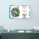 Banner personalizado de la fiesta de cumpleaños para el cumpleaños de una niña. Una adorable rana en un gorra de cumpleaños sosteniendo un regalo con un lindo fondo de punto de polka en rosa y verde azulado.