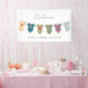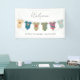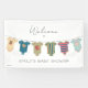 Bienvenido a tu Baby Shower con este banner de bienvenida con ilustracion de trajes de bebé que representa a Sesame Pals Big Bird, Cookie Monster, Oscar the Grouch, Bert, Ernie y Abby Cadabby. Personaliza añadiendo tu nombre y fecha de ducha.