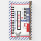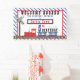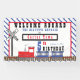 Moderno y divertido tren de choo choo locomotora de vapor a rayas "Welcome Aboard the Birthday Express" diseño de fiesta de cumpleaños que puede ser modificado para cualquier niño de edad. El diseño se complementa con un marco rojo y un fondo de rayas azules y blancas. Diseño original de Holiday Hearts Designs (todos los derechos reservados).