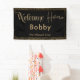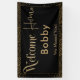 Ya sea que su invitado especial regrese a casa de un despliegue militar, un viaje largo, un año sabático, una larga estancia en el hospital o de otra manera, este diseño es lo suficientemente versátil como para que usted lo encuentre justo lo que necesita. Utilizando dos tipos de letra distintivos, he creado gráficos para su banner y los he embellecido con un efecto purpurina de oro falso metálico para una vibración festiva. Aunque cada parte se puede mover para adaptarla a sus necesidades, el encabezado dice "Bienvenido a casa". Utilice los campos de plantilla para agregar sus propios detalles. Todo el texto se colocó sobre un rectángulo negro que sobrepone otro fondo negro. El contraste de oro Purpurinoso sobre la capa de fondo completa el efecto de borde. ¡Cambia el fondo a cualquier color o color que quieras! // 130, 131 //