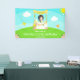 Este bonito cartel de bienvenida presenta un chica de pelo negro con piel clara en un puesto de limonada amarilla decorado con flores y bonificaciones. En el fondo hay un cielo azul, sol y mariposas. El texto combina fuentes decorativas y sans serif para un estilo elegante y moderno. Esto es perfecto para una fiesta de cumpleaños de verano. Gráficos de MUJKA