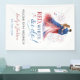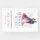 Este diseño presenta un elegante letrero de bienvenida de boda "Rojo, Blanco y Me Caso" del 4 de julio con una ilustración romántica de acuarela de una novia y un novio con atuendo rojo, blanco y azul. Perfecto para una boda del 4 de julio, celebración de novia militar, ducha de boda patriótica o evento de despedida de soltera con tema Americano. ¡Personalízalo con los detalles de tu evento para hacerlo completamente tuyo!