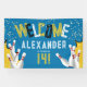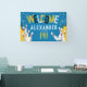 El cartel de bienvenida de Guay Bowling Blue y Yellow Strike Birthday Party estalla con energía, adornado con tipografía audaz en negro, azul y amarillo contra un vibrante telón de fondo azul. Los pines de bolos blancos se encuentran orgullosamente, delineados bruscamente en medio de una cascada de confetti colorido, agregando una capa adicional de festividad y alegría. Este cartel es sólo una pieza de una completa colección de bolos, que incluye invitaciones, servilletas, placas de papel y más. Promete una animada celebración, donde cada detalle, desde las impresionantes imágenes hasta el divertido confeti, contribuye a una inolvidable fiesta de cumpleaños llena de alegría y emoción.
