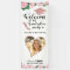 Crea una pancarta única de bienvenida en color rosa, dorado y blanco rosa para la fiesta de graduación con elegantes flores de rosa y una foto en forma de corazón en un marco de colores dorados subió, el dicho Bienvenidos a la fiesta de graduación y decorado con gorra y ilustraciones de diploma. Cargue una imagen y escriba el nombre del graduado, el nombre de la escuela, el año del evento utilizando la plantilla antes de realizar el pedido. Si se necesitan ajustes, por favor, hágalos también dentro de la herramienta de diseño antes de realizar el pedido.