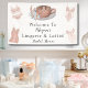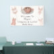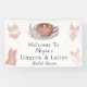 Esta encantadora pancarta de bienvenida marca el tono para una despedida de soltera de Lingerie & Lattes, con lencería de boda elegante, un café con leche acogedor y flores boho en un diseño elegante.