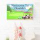 Añada un toque refrescante a su segundo cumpleaños con esta alegre pancarta de bienvenida temática al golf. Con un carrito de golf de punto de polka rosa al lado de un putting green, un pastel festivo y globos de helio brillantes —incluido un audaz globo número 2— este diseño dulce es perfecto para una familia amante del golf o una celebración caprichosa de segundo cumpleaños. Un alegre y único favor de la fiesta, es la forma perfecta de saludar a su huésped.