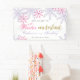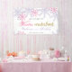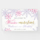 Bienvenidos al cartel de bienvenida de invierno de Onederland, primer cumpleaños, para la fiesta de primer cumpleaños de la niña. Pancarta de cumpleaños de bienvenida rosa y morado para una fiesta de cumpleaños de invierno. Ilustracion digital de Kristine Lee. Para obtener más información, visite www.kristineleedesigns.com