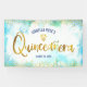 ¡Doy la bienvenida con orgullo a todos los huéspedes del fiesta Quinceañera de tu hija! Muestra este impresionante banner moderno, elegante y personalizado para añadir a su día especial. Una brillante corona de Relieve metalizado de imitación dorada, pequeños puntos de purpurina de confeti y un guión manuscrito falso de Relieve metalizado dorado superponen un fondo de color azul turquesa. Personalice el texto del personalizado con el nombre y la fecha del evento de su hija. Ideal para la flamante moda que ama el purpurina moderno y el glam y garantiza preservar los recuerdos de su ocasión especial. En esta colección de moda y especial también se pueden encontrar las invitaciones, etiquetas de direcciones, pegatinas, carpetas de keepsake y otras golosinas de Quinceañera. Simplemente teclee su nombre y fecha, y puedes personalizar fácilmente este banner de bienvenida de Quinceañera fiesta. Por favor, envíame cualquier pregunta o petición.