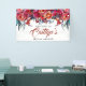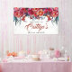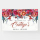 La pancarta de bienvenida Boho bridal ducha incluye una hermosa variedad de flores rojas brillantes con plumas azules y vegetación botánica. Las flores incluyen rosas rosadas y rosas rojas brillantes con toques dorados. Las hojas verdes profundas y las viñas rojas profundas con acentos plumas crean un ambiente boho audaz. Juntos crean un marco de moda sobre el nombre de la novia y la declaración de bienvenida. Todo el texto se puede personalizar fácilmente.