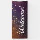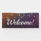Banner de bienvenida simple y elegante para cualquier evento con fondo de luces de cadena fiesta y la palabra Bienvenida en una fuente de script. Añade más texto a continuación si es necesario.