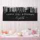 A banner for a girly and glamorous 21st (or any age) birthday party. A chic black background with trendy faux silver glitter drips, paint dripping look. The text: Personalize and add a name written with a large modern hand lettered style script. White letters. Perfect both as a welcome banner or as party decor.