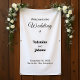 A classic and timeless portrait banner that can complement various wedding themes. It is also suitable for couples who prefer a text based design without background elements for readability. The black texts contrasting on the white background also improves readability. The texts are center aligned and the fonts used are calligraphy, script and sans serif. Calligraphy and script fonts are used to enhance the design while the sans serif font is used to enhance readability. Customize it by typing the names of the bride and groom, date and location of the wedding. You can also change the contents or wordings in the design tool including the font style, font color and background color. Please check the appearance after typing texts. If the appearance is pleasing to you, you can place your order now. If you need to resize or reposition the texts, please adjust in the design tool. A banner to welcome the guests and enhance the wedding venue. To the bride and groom, congratulations on your engagement! Wishing you both a lifetime filled with love and happiness.