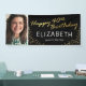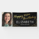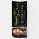Banner personalizado de la fiesta de 40 años con un elegante fondo negro que se puede cambiar a cualquier color, una foto del chico/chica de cumpleaños, purpurina brillante de oro, las palabras "feliz 40 cumpleaños" en un falso guión de Relieve metalizado de oro, su nombre y la fecha.