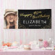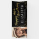 Banner moderno de la fiesta de cumpleaños de los noventa con un elegante fondo negro que se puede cambiar a cualquier color, una foto del niño/chica de cumpleaños, purpurina brillante de oro, las palabras "feliz cumpleaños 90" en un falso guión de Relieve metalizado de oro, su nombre y la fecha.