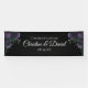 Elegante diseño gótico de color púrpura morado sobre boda negro, adorable con rosas púrpura y vegetación sobre un fondo negro oscuro para un aspecto boda gótico. Las flores adornan las esquinas para un aspecto elegante, moderno y refinado.