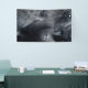 Dreamy monochromatic space galaxy nebula astronomy watercolor painting, filled with shining white stars, dark gray cloudy space dust, and watercolor painting stains and splatters, black and white colors with faded shades of dark blue, navy blue and brown universe artwork.