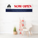 Simple abierto para banner de negocios en un mínimo diseño azul, rojo y blanco con NOW OPEN escrito en letras grandes. Agregue su logotipo y texto adicional según sea necesario.