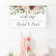 El elegante diseño de las banderas es perfecto para dar la bienvenida a su boda. El diseño presenta una caída floral de acuarela en tonos suaves de otoño de verde, rubio y borgoña, con tres líneas de texto personalizado debajo. Diseñado para coincidir con nuestra colección de bodas Rustic Bloom.
