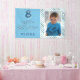 Pancarta de cumpleaños feliz con foto de Blue Abstract Wave Boy. El diseño tiene olas azules y blancas, fondo azul, texto divertido feliz cumpleaños y nombre. Agrega tu foto y tu nombre. Genial para la fiesta de cumpleaños de un niño.