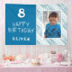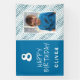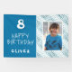 Pancarta de cumpleaños feliz con foto de Blue Abstract Wave Boy. El diseño tiene olas azules y blancas, fondo azul, texto divertido feliz cumpleaños y nombre. Agrega tu foto y tu nombre. Genial para la fiesta de cumpleaños de un niño.