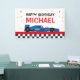 Blue Car racing Happy Birthday backdrop