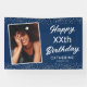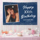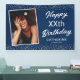Haga de cada cumpleaños un recuerdo memorable con nuestro cartel de fiesta de cumpleaños de cualquier edad de nuestro personalizado. Decorado con un elegante fondo azul que se puede intercambiar por cualquier color, una imagen de la estrella del cumpleaños, un brillante purpurina plateado, y personalizado con el nombre, la edad y la fecha, este banner seguramente será la estrella de la celebración.