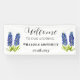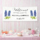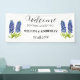 Banner de bienvenida moderno, elegante, con redes de color azul, Boda de acuarela floral azul. Banner rústico, azul de flores silvestres. Perfecto para recién casados. Puedes personalizarlo con los nombres y fechas de la novia y el novio.