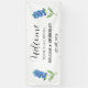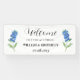 Banner de bienvenida moderno, elegante, con redes de color azul, Boda de acuarela floral azul. Banner rústico, azul de flores silvestres. Perfecto para recién casados. Puedes personalizarlo con los nombres y fechas de la novia y el novio.