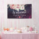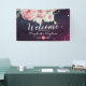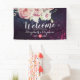 Plantillas de banner de bienvenida boda - Elegante acuarela de plumas naturales de Boho y escritura manuscrita sobre fondo de la parquetería morada de Bokeh. ¡Un Diseño Perfecto Para Tu Gran Día! Todos Los Estilo De Texto, Los Colores Y Los Tamaños Se Pueden Modificar Para Ajustarse A Sus Necesidades.