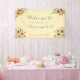 Este cartel de bonito cuenta con un arreglo floral rústico de girasol y eucalipto en cada esquina. La tipografía dice Bienvenidos al boda de (nombres de novias y novias) y a la fecha boda.
