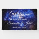 Una caligrafía moderna y elegante con un estilo moderno y todo tipo de letra en blanco. Una foto celestial azul marino, negra y blanca de muchas estrellas y una hermosa escena. Señal azul boda celestial.