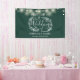 Lona Boda con guirnalda floral verde esmeralda y letra