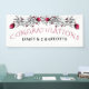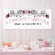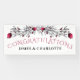Añada este cartel colgante a sus accesorios de recepción de bodas. Diseñado en brillantes tonos de Rojo Cranberry, con floral de carbón negro sobre fondo blanco, el texto incluye: FELICITACIONES, y los Nombres de Novia y Groom. Esta pancarta funciona bien para Bodas de invierno y Navidades de temporada, así como para ocasiones de primavera. Para personalizar, simplemente reemplace el ejemplo de los Nombres de Novia y Groom con nuestra plantilla sencilla. Asegúrese de ver toda la colección de Bodas de acuarela de Holiday Blossoms.