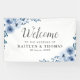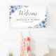 flores azules pintadas a mano con acuarela con guión y texto. Los colores y otras características de este banner se pueden personalizar.