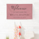Bienvenido Boda Nombres Fecha Rosa Dusty. Diseño tipográfico 100% personalizable con sus nombres y fecha boda en un estilo moderno y sencillo y Bienvenido al principio en un guión elegante con un polvoriento fondo rosado Rosa. Personaliza fácilmente el texto. También puede hacer clic en personalizar para cambiar los colores del texto y del fondo para que coincidan con los colores bodas, así como el estilo y los tamaños del texto si lo desea.